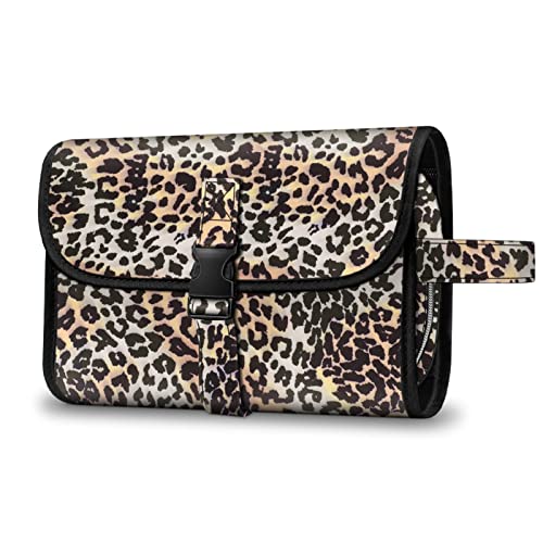 FINTIE Trousse de Toilette Femme/Fille, Trousse Toilette à Suspendre avec Crochet, Grande Trousse de Maquillage Voyage Étanche Portable, Léopard