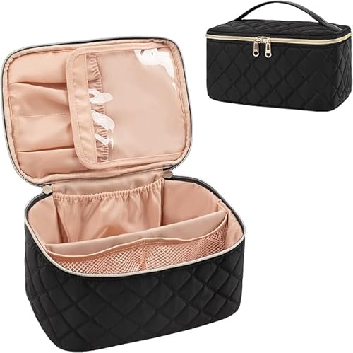 Relavel Trousse de Maquillage de Voyage Portable avec séparateurs réglables pour cosmétiques, pinceaux de Maquillage, Articles de Toilette, Bijoux numériques, Accessoires