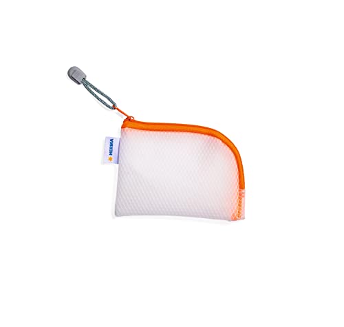 Herma 20028 - Trousse de Voyage à Fermeture éclair - Format A6 - Transparent - Orange - Petite Poche Transparente - avec Fermeture éclair - pour la Toilette - pour téléphone Portable, câbles de