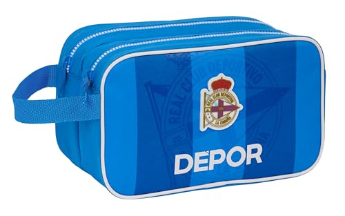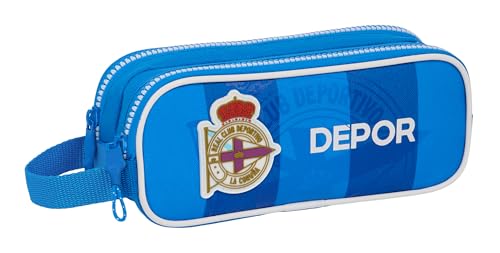 safta Real Deportivo DE LA CORUÑA Trousse Double pour Enfant, idéale pour Les Enfants d'âge Scolaire, Confortable et Polyvalente, qualité et résistance, 21 x 6 x 8 cm, Couleur Bleue, Bleu, Estándar,