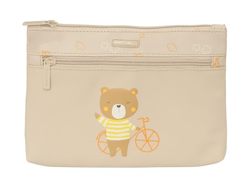 Safta Trousse préscolaire Ourson - Grande Trousse Scolaire Double Fermeture éclair, Trousse Enfant, Confortable et Polyvalente, Nettoyage Facile, 23 x 3 x 16 cm, Couleur Beige, Beige, Estándar,