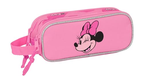 Safta Minnie Mouse Loving Trousse Double pour Enfant, idéale pour Les Enfants d'âge Scolaire, Confortable et Polyvalente, qualité et résistance, 21 x 6 x 8 cm, Rose, Rose, Estándar, Décontracté