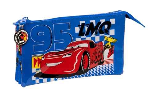 Safta Cars Race Ready - Trousse Triple, Trousse pour Enfant, idéale pour Les Enfants d'âge Scolaire, Confortable et Polyvalente, qualité et résistance, 22 x 3 x 12 cm, Couleur Bleu électrique, Bleu