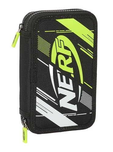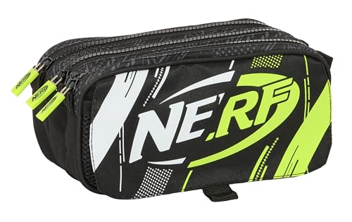 Safta Nerf Get Ready Trousse Triple, Trousse pour Enfant, idéale pour Les Enfants d'âge Scolaire, Confortable et Polyvalente, qualité et résistance, 22 x 3 x 12 cm, Couleur Noire, Noir, Estándar,
