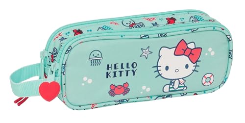 Safta Hello Kitty Sea Lovers Trousse Double pour Enfant, idéale pour Les Enfants d'âge Scolaire, Confortable et Polyvalente, qualité et résistance, 21 x 6 x 8 cm, Couleur Turquoise, Turquoise,