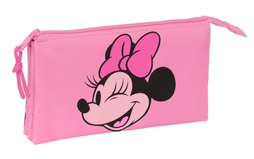 Safta Minnie Mouse Loving Trousse Triple pour Enfant, idéale pour Les Enfants d'âge Scolaire, Confortable et Polyvalente, qualité et résistance, 22 x 3 x 12 cm, Rose, Rose, Estándar, Décontracté