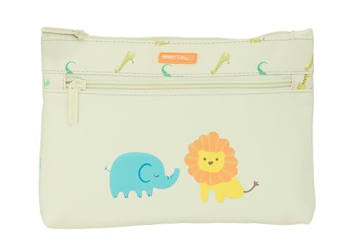 Safta Preescolar Selva - Grande trousse scolaire double fermeture éclair, trousse pour enfant, confortable et polyvalente, nettoyage facile, 23 x 3 x 16 cm, couleur blanc cassé, Blanc cassé, Estándar,