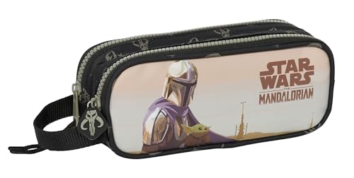 Safta The Mandalorian This The Way - Trousse Double Enfant, idéale pour Les Enfants d'âge Scolaire, Confortable et Polyvalente, qualité et résistance, 21 x 6 x 8 cm, Couleur Noire, Noir, Estándar,