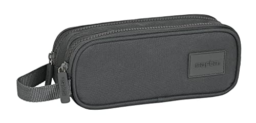 safta - Trousse Double Enfant, étui pour Enfants, idéal pour Les Enfants d'âge Scolaire, Confortable et Polyvalent, qualité et résistance, 21 x 6 x 8 cm, Couleur Grise, Gris, Estándar, décontracté