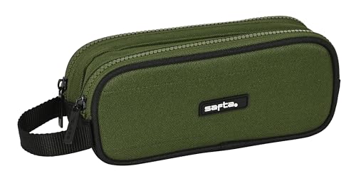 Safta Dark Forest Trousse Double pour Enfant, idéale pour Les Enfants d'âge Scolaire, Confortable et Polyvalente, qualité et résistance, 21 x 6 x 8 cm, Vert Kaki/Noir, Vert Kaki/Noir, Estándar,