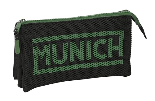 Safta Munich Caviar Trousse Triple pour Enfant, idéale pour Les Enfants d'âge Scolaire, Confortable et Polyvalente, qualité et résistance, 22 x 3 x 12 cm, Couleur Noire, Noir, Estándar, Trousse