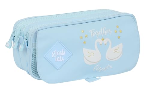 Glowlab CISNES - Trousse Triple pour Enfant, idéale pour Les Enfants d'âge Scolaire, Confortable et Polyvalente, qualité et résistance, 22 x 3 x 12 cm, Couleur Bleu Clair, Bleu Clair, Estándar,