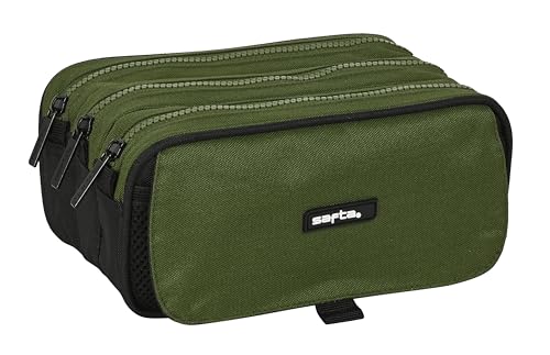 Safta Dark Forest Trousse Triple Grande Trousse pour Enfant, idéale pour Les Enfants d'âge Scolaire, Confortable et Polyvalente, qualité et résistance, 21,5 x 8 x 10 cm, Vert Kaki/Noir, Vert