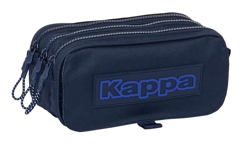 Safta Kappa Blue Night Trousse triple grande trousse pour enfant, idéale pour les enfants d'âge scolaire, confortable et polyvalente, qualité et résistance, 21,5 x 8 x 10 cm, couleur bleu marine, bleu