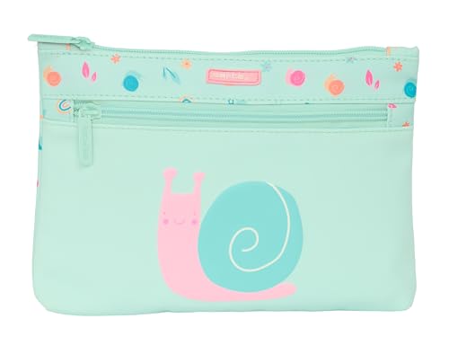 Safta Préscolaire Escargot - Trousse Scolaire Grande Double Fermeture éclair, Trousse pour Enfant, Pratique et Polyvalente, Nettoyage Facile, 23 x 3 x 16 cm, Couleur Turquoise Clair, Turquoise Clair,