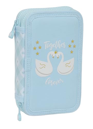 safta - Trousse Double Enfant, étui pour Enfants, idéal pour Les Enfants d'âge Scolaire, Confortable et Polyvalent, qualité et résistance, 21 x 6 x 8 cm, Couleur Bleu, Bleu, Estándar, décontracté