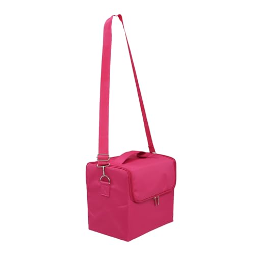 Trousse de maquillage à main de grande capacité multi-couches pour manucure et coiffure, trousse de rangement pour cosmétiques, trousse de toilette, sac à main pour femme, rose rouge, Beauté de masse