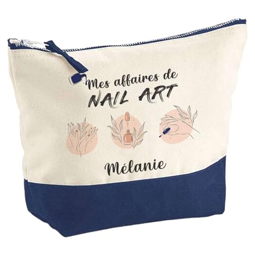 Pochette Bleue Affaires de Nail Art Mélanie | Trousse Vernis à Ongles Manucure Cadeau Anniversaire Femme prothésiste ongulaire Fête des Mères