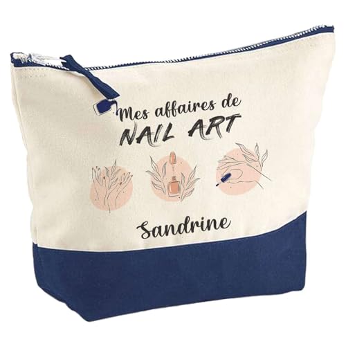 Pochette Bleue Affaires de Nail Art Sandrine | Trousse Vernis à Ongles Manucure Cadeau Anniversaire Femme prothésiste ongulaire Fête des Mères