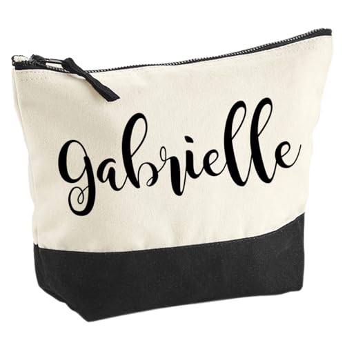 Trousse de maquillage pour fille avec nom | Motif lettre initiale avec impression de nom | Trousse de maquillage personnalisée pour fille et femme, beige, M (19 x 17 cm), Trousse de maquillage