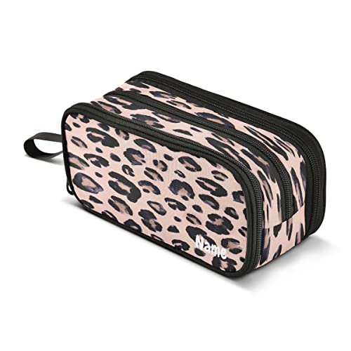 Mnsruu Trousse à crayons personnalisée avec imprimé léopard - 3 compartiments - Sac de rangement portable pour l'école - Pour filles et garçons