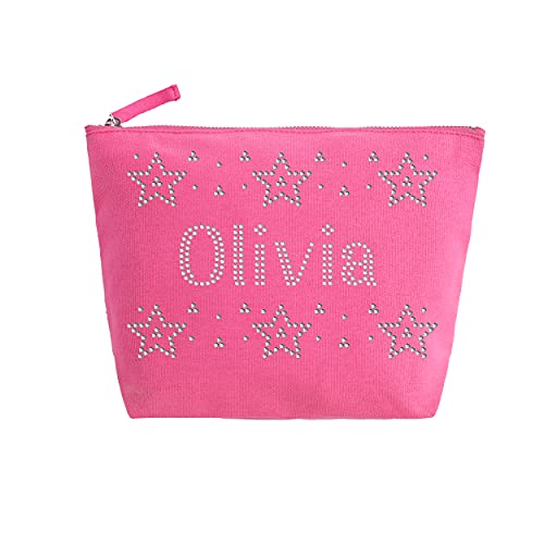 Trousse de maquillage pour fille avec nom | Motif lettre initiale avec impression de nom | Trousse de maquillage personnalisée pour fille et femme, Rose, M (19 x 17 cm), Trousse de maquillage