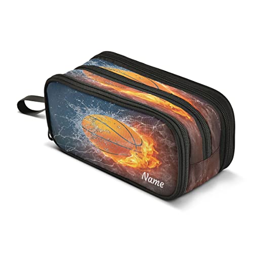 Trousse à crayons personnalisée avec texture ballon de basket-ball, 3 compartiments, sac de rangement pour fournitures scolaires, pour filles et garçons