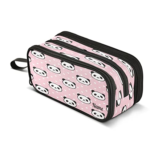 Mnsruu Trousse à crayons personnalisée noir et blanc ours panda 3 compartiments enfants nom sac pochette porte-stylo boîte scolaire portable papeterie sac de rangement pour filles garçons, multicolore