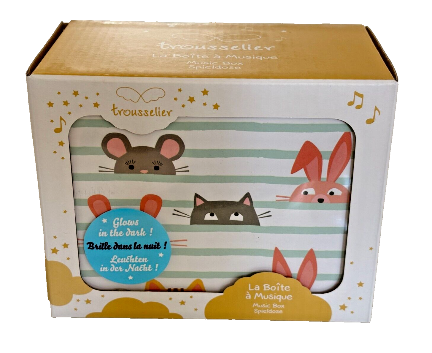 TROUSSELIER - Boite a Musique Enfant Pingouin - Boîte à Trésors & Bijoux Musicale - Idéal Cadeau Enfant - Phosphorescent - Brille dans la nuit - Musique Petite Musique de Nuit de Mozart