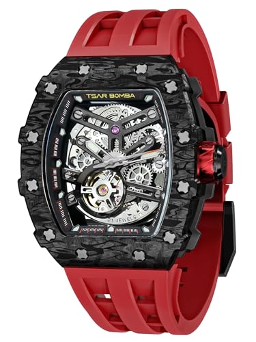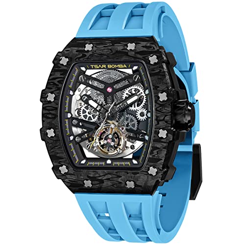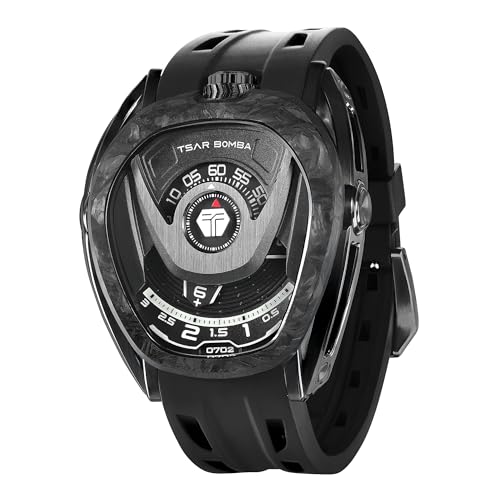 TSAR BOMBA Montre-Bracelet pour Hommes Montre mécanique Luxe avec braceletcaoutchouc fluoré boîtier Fibre Carbone indicateur Lumineux étanchéité à 5 ATM Offre Fois Cadeau pour Les Hommes