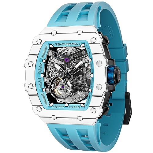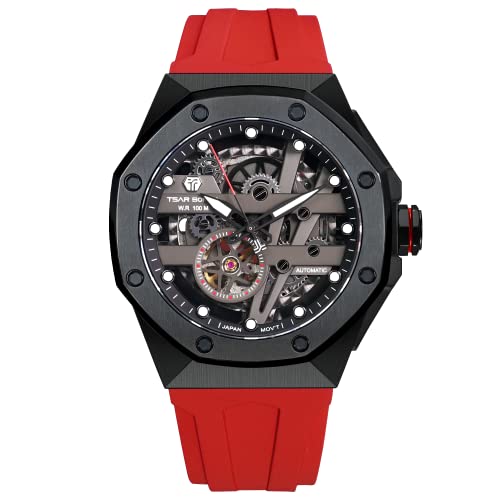 TSAR BOMBA Montre mécanique Automatique pour Homme - Montre Squelette étanche analogique - Réplique du Cadran à Grand Cadran - Bracelet en Caoutchouc FKM