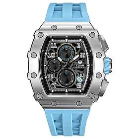 TSAR BOMBA Montre pour Homme Montres-Bracelets pour Homme Étanche Bracelet Bleu Boîtier en Acier Inoxydable argenté Saphir Chronographe Date Mouvement à Quartz Japonais Cadeaux Série 8224