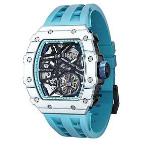 TSAR BOMBA Montre pour Homme Montres automatiques de Luxe pour Homme Bracelet en Caoutchouc fluorocarboné Blanc Fibre de Carbone Blanche Étanche Grand Cadran Cadeau 8228CF
