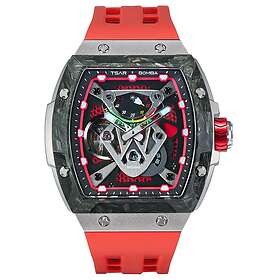 TSAR BOMBA Montre pour Homme Montres automatiques de Luxe pour Homme Bracelet en Caoutchouc fluorocarboné Rouge Fibre de Carbone Noire Étanche Grand Cadran Cadeau 8228CF