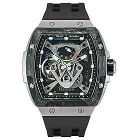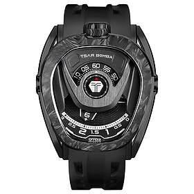 TSAR BOMBA Montre Homme Automatique - Montres Fibre de Carbone Tonneau de Luxe - Etanche 50m - Indicateur de Réserve de Marche - Bracelet en Caoutchouc Fluoré - Lumineux