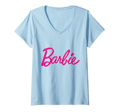 T-shirt Barbie Femme, Logo Barbie Officiel T-Shirt avec Col en V