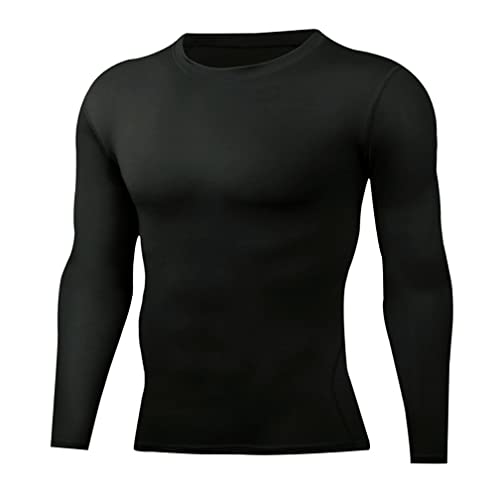 Jungerhouse T-Shirt Compression Homme Manche Longue Tshirt Baselayer Maillot Running Vetement Fitness Hauts de Compression Sports Jogging Musculation Gym (S,Noir)