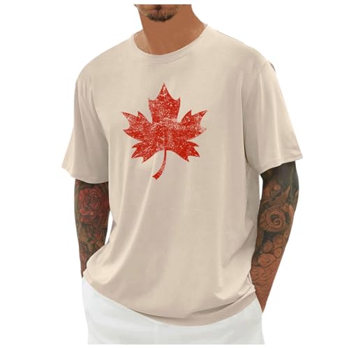 T Shirt Manche Longue Homme - Tshirt Blanc Homme T-shirt décontracté manches courtes pour homme motif drapeau du Canada col rond respirant et confortable idéal pour fêtes voyages sport ou au quotidien