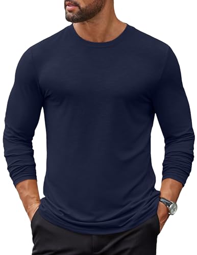 COOFANDY T Shirt Homme Tee-Shirt Manche Longue Tshirt Travail T-Shirts Uni Bleu Marine M