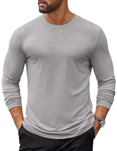 COOFANDY Tee Shirt Homme Manche Longue T Shirt Basique Tshirt Travail Gris Clair S