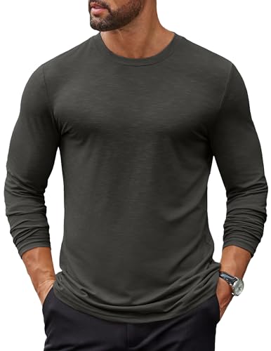 COOFANDY Tshirt Homme Tee Shirt Manche Longue T-Shirt col Rond T Shirt Décontracté Gris Foncé XL