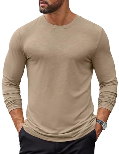 COOFANDY Tshirt Homme Tee Shirt Manche Longue T-Shirt col Rond T Shirt Décontracté Kaki L