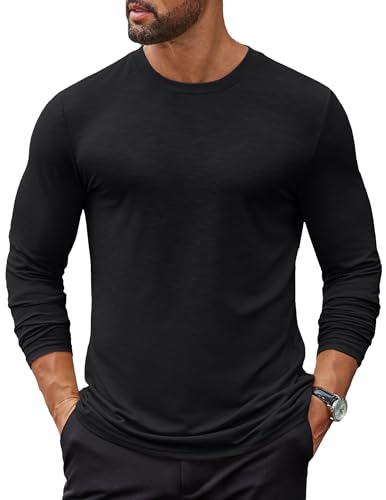 COOFANDY Tee Shirt Homme Manche Longue T Shirt Basique Tshirt Travail Noir M