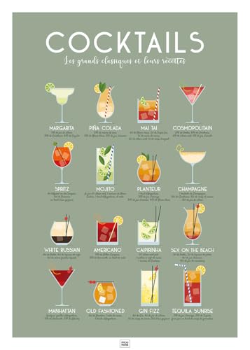 Frog Posters - Affiche cocktails : 16 recettes cocktails - 50 cm x 70 cm - Papier de qualité musée - Made in France - Ecoresponsable - Livrée dans un tube protecteur en carton - Idée cadeau