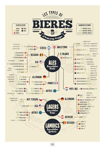 Frog Posters - Affiche bière : les 73 types de bières du monde - 50 cm x 70 cm - Papier de qualité musée - Made in France - Ecoresponsable - Livrée dans un tube protecteur en carton - Idée cadeau