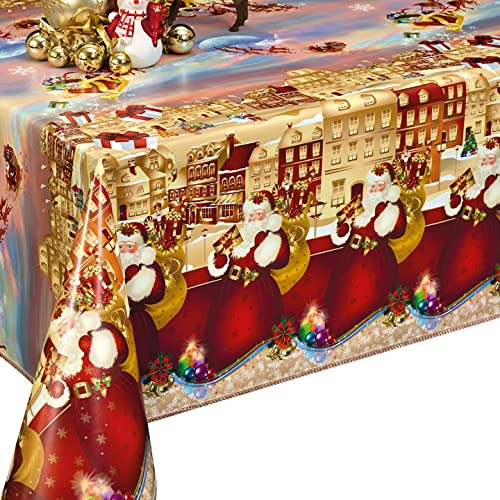 Nortufting Nappe Toile Cirée de Noël – New Year Blanc – Nappe Festive de Noël – Imperméable et Anti Tâche Largeur 140 cm – Roulé sur Un Tube en Carton (sans Plis) (Rectangle 140x150cm)