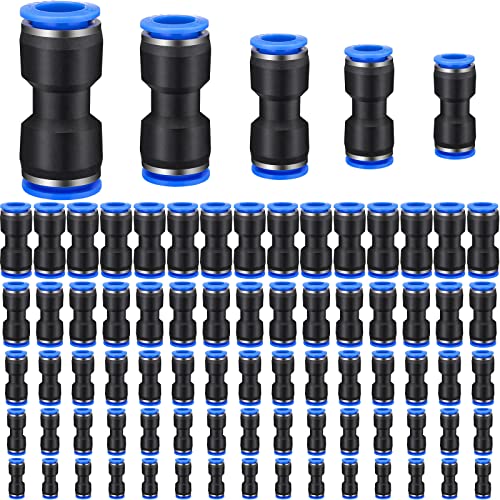 Lot de 100 connecteurs pneumatiques droits de 4/6/8/10/12 mm Raccords de tube en plastique à pousser pour connecter des tubes droits à air pour tube OD de 5/32", 1/4", 5/16", 3/8", 1/2", 2 voies