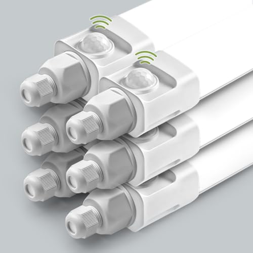 4 Pièce Neon LED 60cm avec Détecteur de Mouvement,18W 4000K Lampe Garage avec Capteur de Mouvement,IP65 Imperméable Reglette LED Tube pour Exterieur Intérieur Atelier,Cave,Bureau,Grand Magasin,Couloir