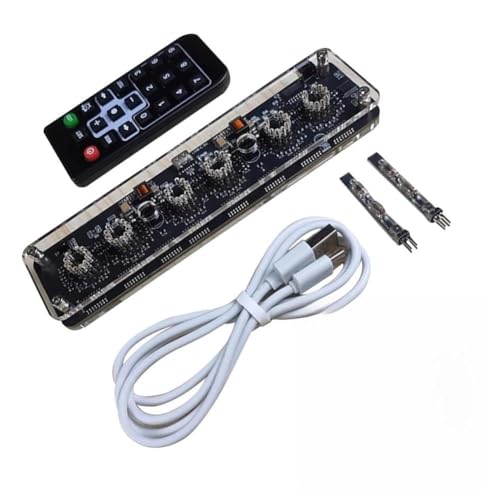 Helilyco IN14 Nixie Support d'horloge à 6 chiffres avec affichage numérique, compatible avec les tubes IN-14, alimenté par USB, câble de charge, version premium avec télécommande et lumières LED