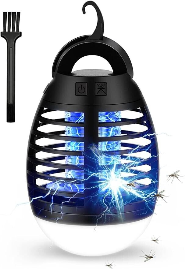 MOSSNDAR Lampe Anti Moustique 2-en-1 Portatif & Étanche IPX6 Piège à Moustiques et Lampe de Camping Rechargeable USB avec 3 Niveaux de Luminosité,Tueur d’Insectes Compact pour Intérieur/Extérieur